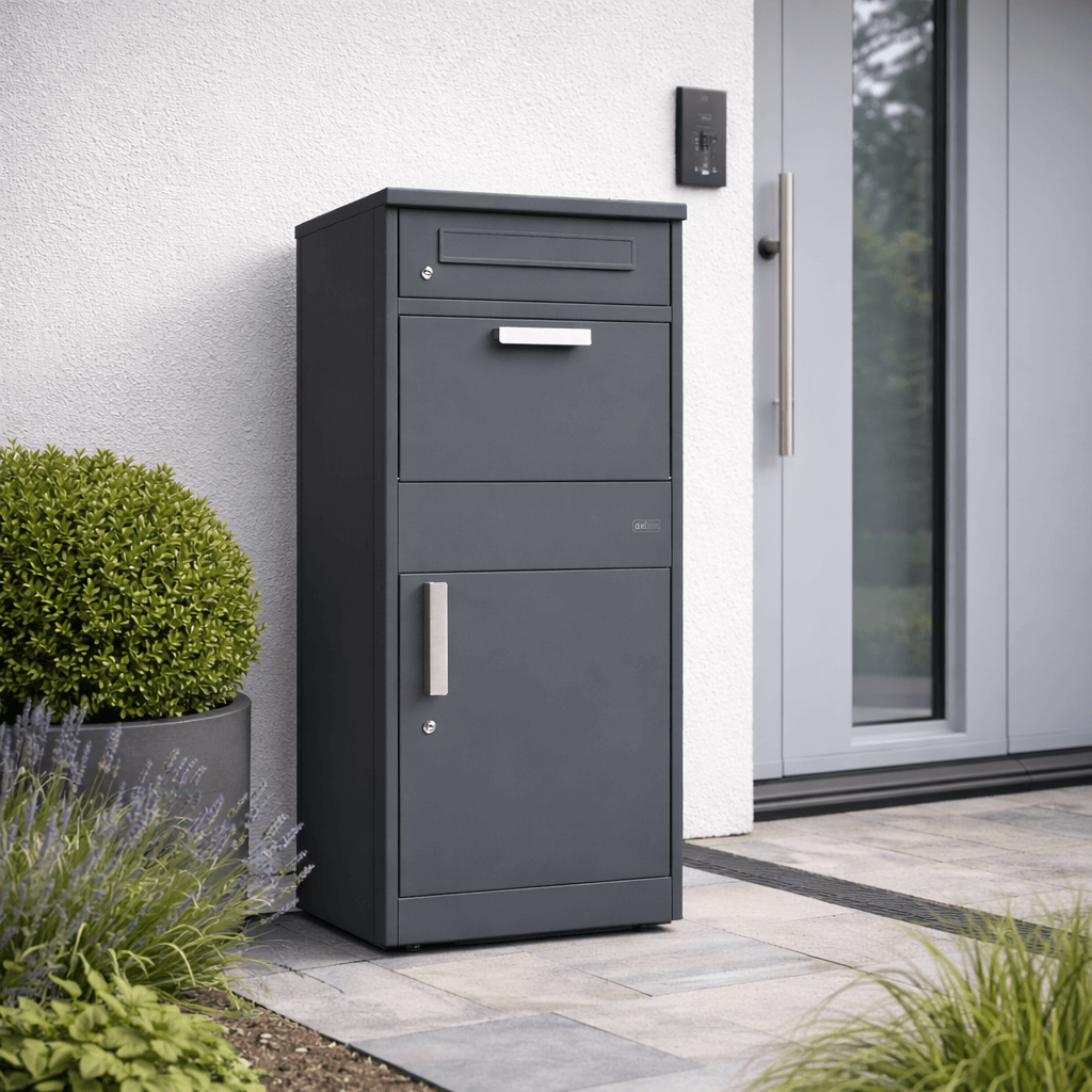 Poštni nabiralnik za pošto in pakete CLASSIC je zasnovan kot praktična in varna rešitev za sodoben način dostave, kjer paket pogosto prispe, ko te ni doma. Dostavljalec paket preprosto vstavi skozi sprednjo odprtino, nato pa paket zaradi gravitacije zdrsne v spodnji paketni predal.